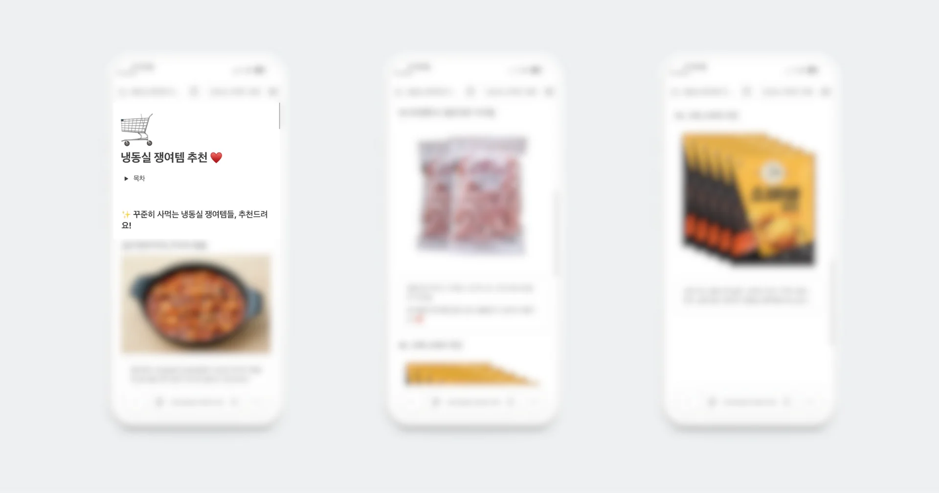 그다음 팔로워 특성에 맞춰 〈냉동실 쟁여템〉 추천 콘텐츠를 제작했습니다. 여기서 중요한 포인트는 공구 예정 제품만 밀지 않았다는 점이에요. 판매 예정 상품을 포함하되, 함께 두고 먹으면 좋은 제품들을 타사 제품이라도 과감하게 추천했습니다. “어떻게든 우리 제품을 팔겠다”가 아니라, “냉동실에 이런 조합으로 두면 생활이 편해진다”는 진짜 추천 콘텐츠로 보이게 만들기 위해서였습니다.