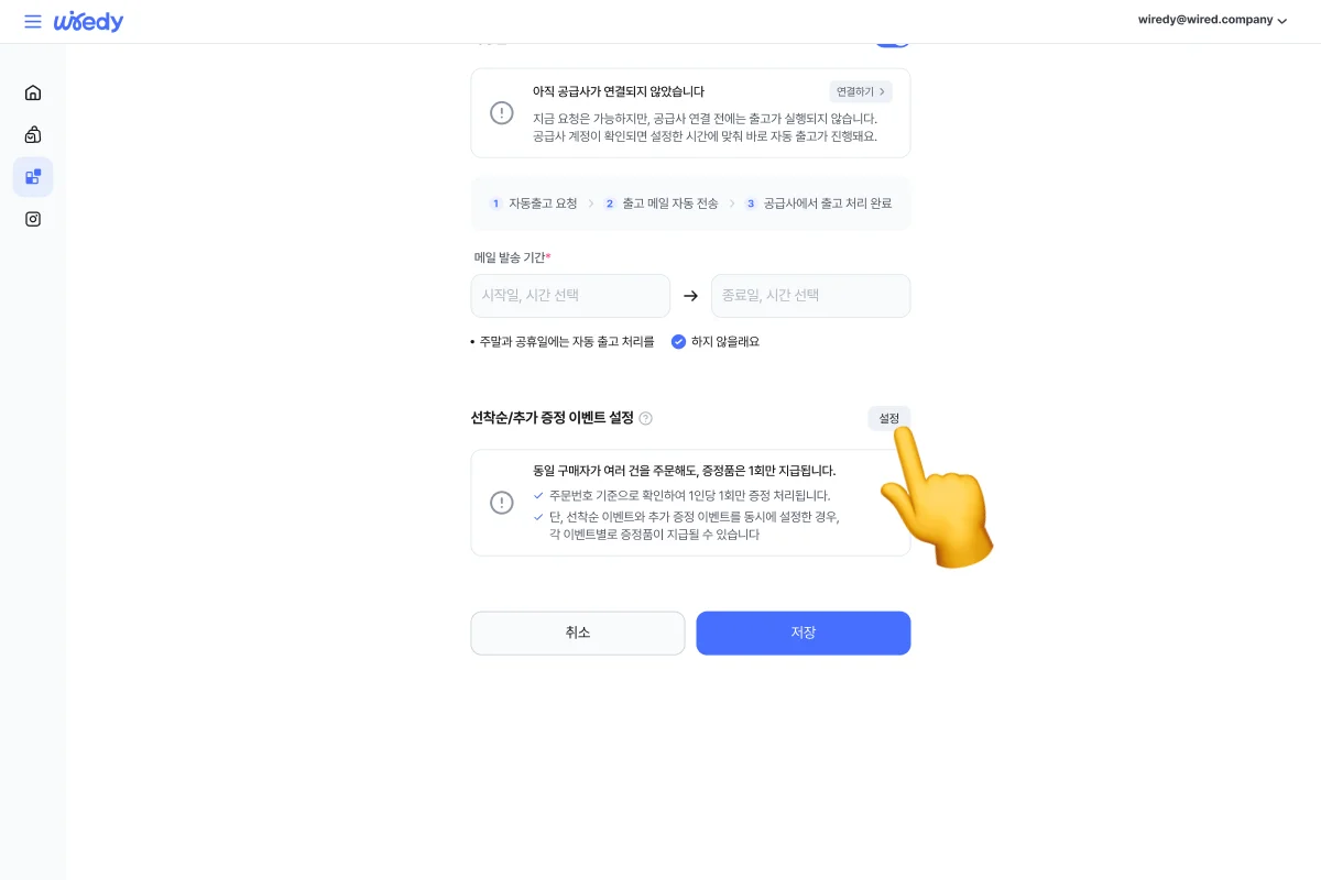 ② 선착순/추가 증정 이벤트 설정 버튼 클릭